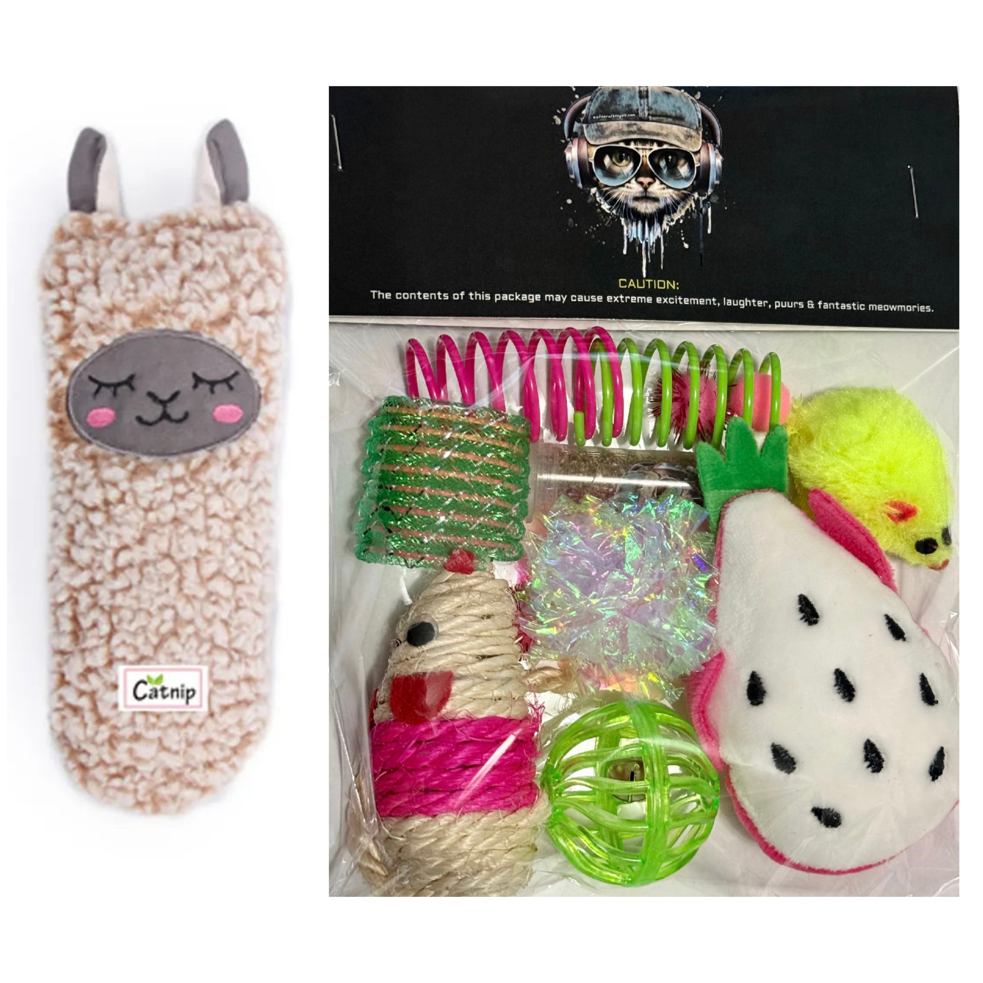Free Crinkle Catnip Llama Kicker and Cat nip infusion toy set on orders $30+
